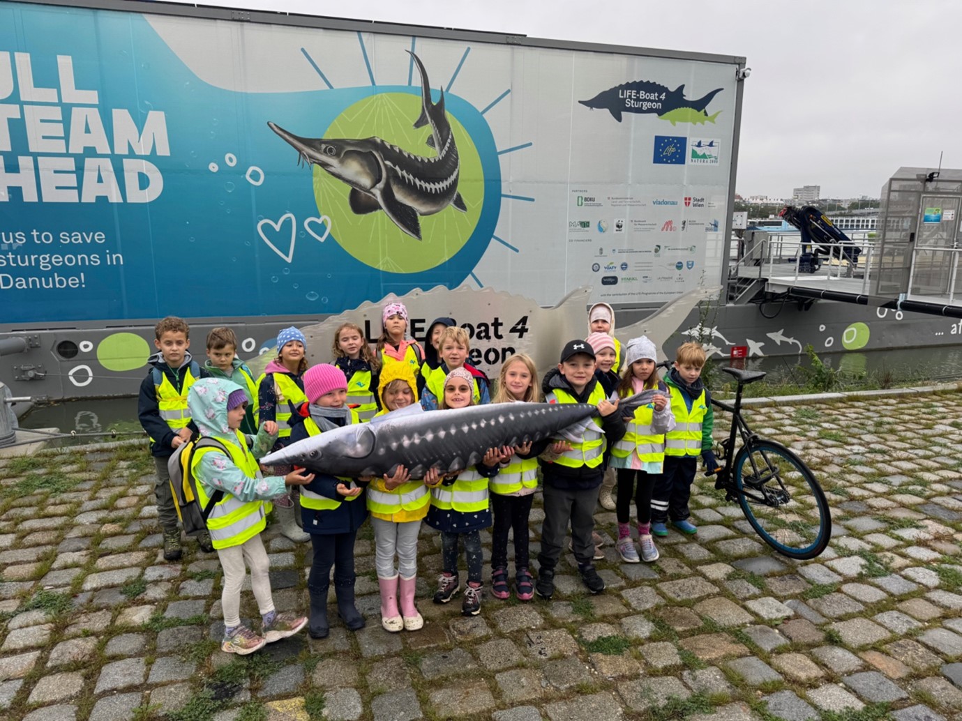 Die Schulklasse 1b der PVS Kritzendorf durfte einen ganz besonderen Tag auf der Wiener Donauinsel erleben: Gemeinsam mit dem Team von Lifeboat-4-Sturgeon setzten die Kinder 20 junge Sterlets (Sterling) in die Donau aus und schickten sie auf ihre spannende Reise zurück in ihren Lebensraum.
