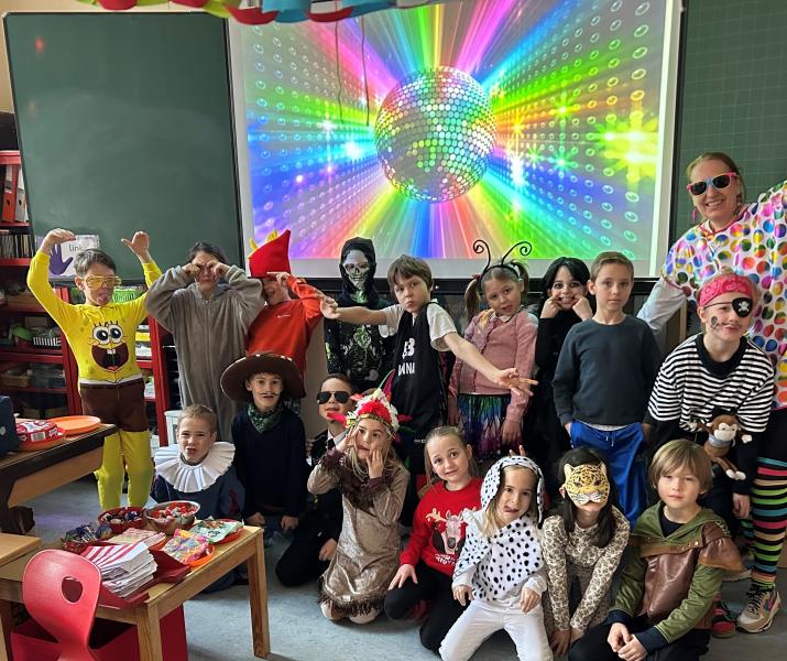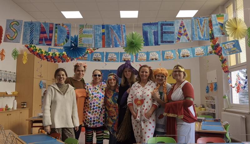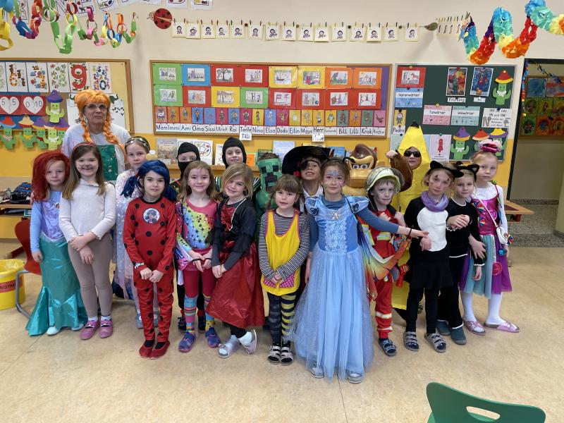 Am Faschingsdienstag kann man viele ungewöhnliche Schulkinder in den Klassen antreffen: Da sitzt ein Bankräuber neben einer Hexe oder ein Drache neben einem Schmetterling. Ungewöhnlich waren auch deren Lehrkräfte: Pippi Langstrumpf, ein Blumentopf oder ein Baby...