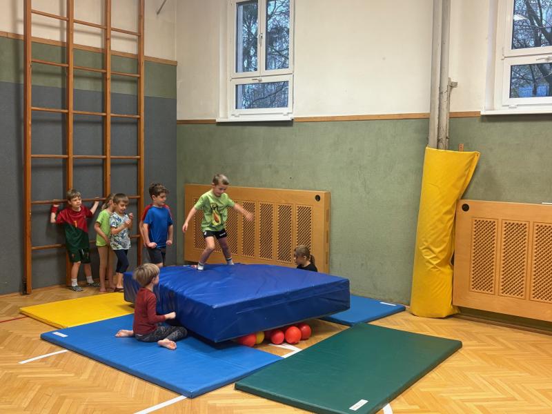 Die Kinder der 1.a Klasse lieben Geräteturnen im Sportunterricht.