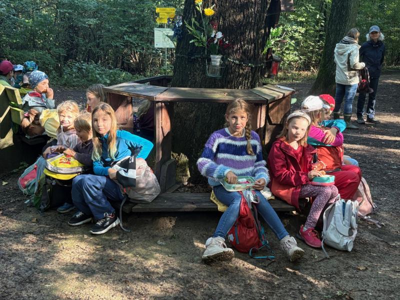 Die 1a-4b-Partnerklassen machten einen gemütlichen Ausflug zur Waldandacht.