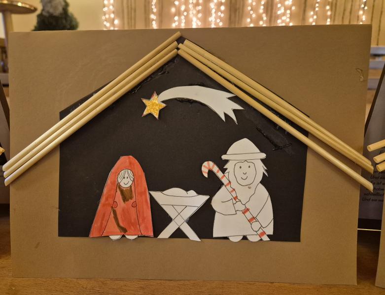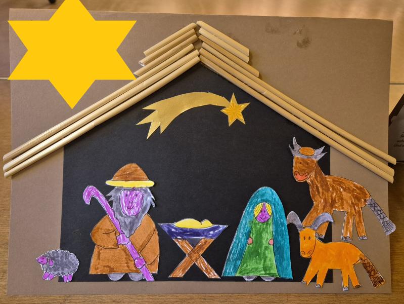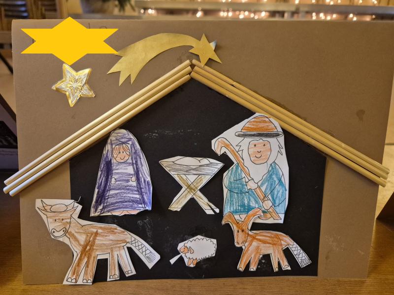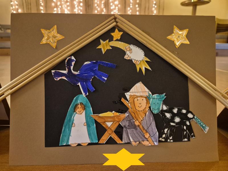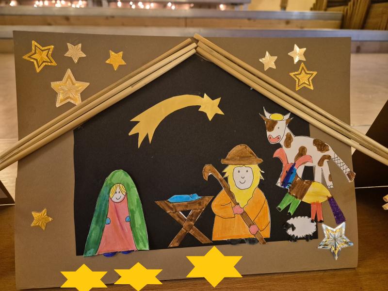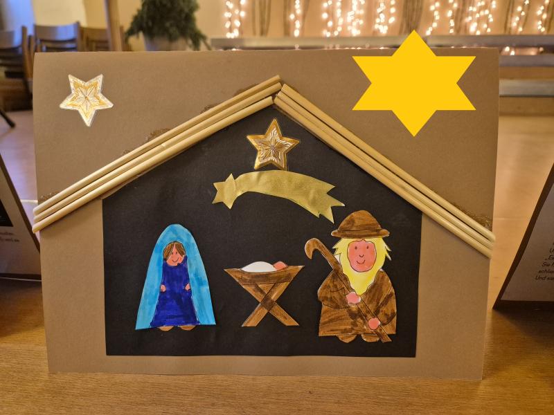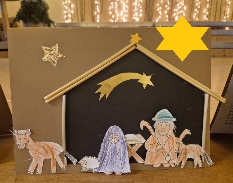 Dann ging es zum gemütlichen Ausklang über. Die Kinder bastelten mit ihren Eltern Papier-Krippen und stärkten sich bei Punsch und Keksen.