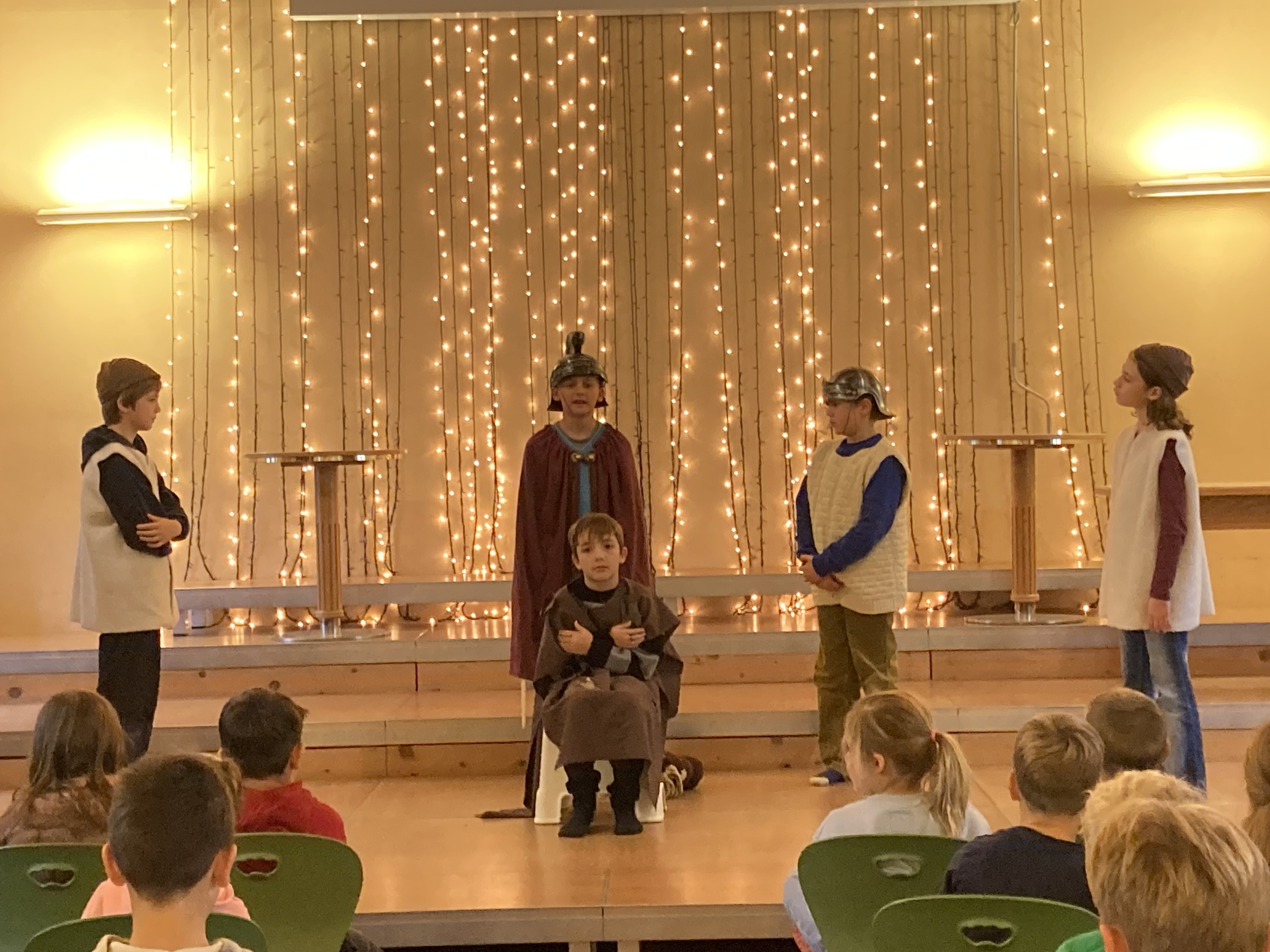 Am 11.11.2025 begeisterten die Schülerinnen und Schüler der 4a mit einem eigens einstudierten Martinspiel.